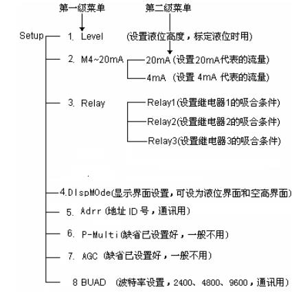 菜單結(jié)構(gòu)如下,共分二級菜單,點【OK】鍵進(jìn)入下級菜單,點【MODE】鍵返回上級菜單