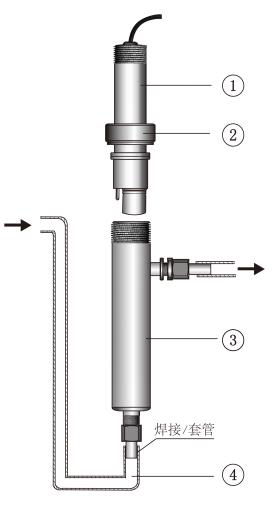 ?用壓緊環(huán)把電極與專用底座的螺紋相接擰緊,避免水流溢出。