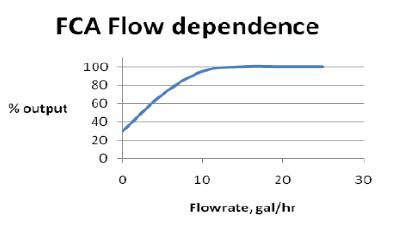余氯傳感器對流量較敏感,低位流量要求不小于0.5 英尺/秒,利用恒流量控制裝置提供穩(wěn)定的樣品流量,流量控制在10-80 gal/h之間為宜。(電流輸出與流量關(guān)系曲線見下圖)