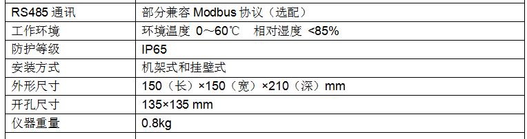 儀表外形尺寸:150(L)×150(W)×210(H)mm