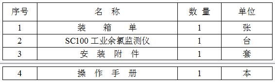 余氯監(jiān)測儀的包裝,內(nèi)層是塑料袋進行防潮,中間用泡沫隔震,外部裝用紙箱包裝,裝箱清單如表3-1: