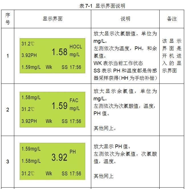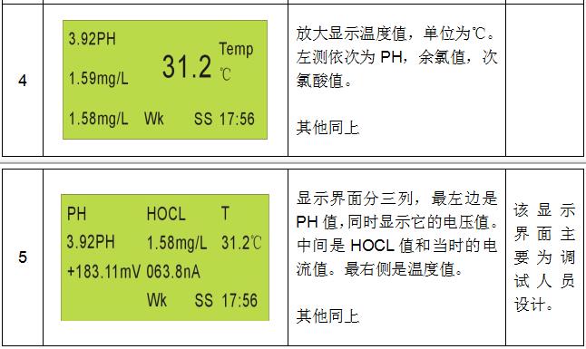 在儀表面板上,按“Up”鍵和“Down”鍵(或“Left”“Right”)可以分別在5種不同的顯示方式下查看測量的參數(shù)值,增加用戶的操作靈活性。5種顯示方式如下表7-1說明。