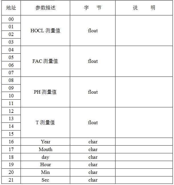 MODBUS 地址信息表: